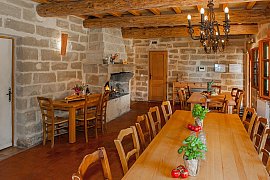 Im Gruppenhaus gibt es 2 Speiseräume (ein Kamin), einen 60 m² Saal für diverse Nutzungen.