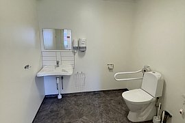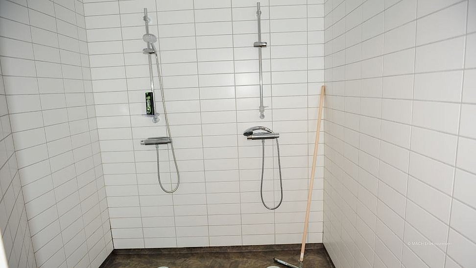 Insgesamt gibt es 9 Toiletten und 8 Duschen.