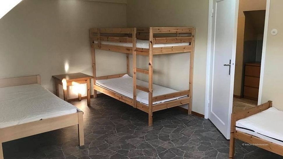 - Obergeschoss: 20 Betten in drei 2-Bett-, zwei 3-Bett- und zwei 4-Bettzimmer