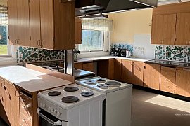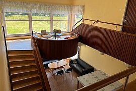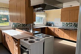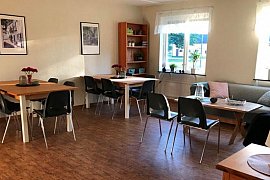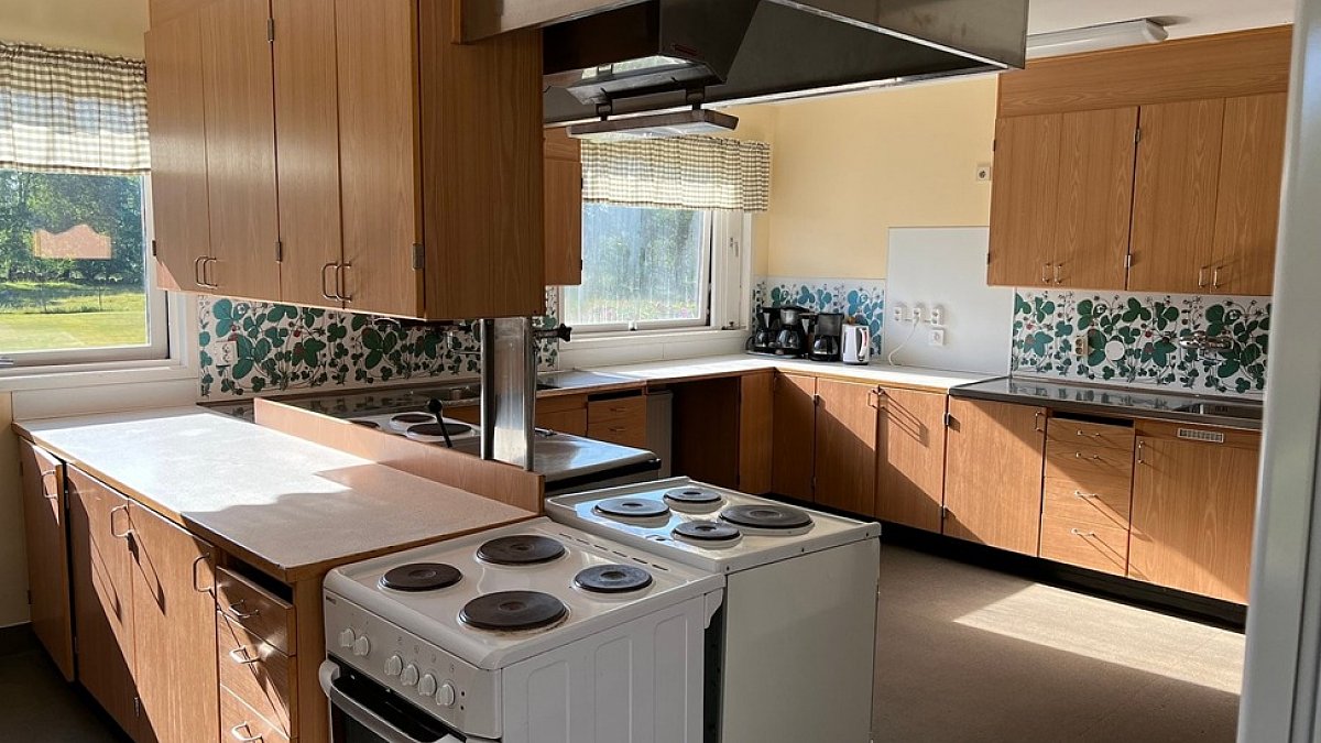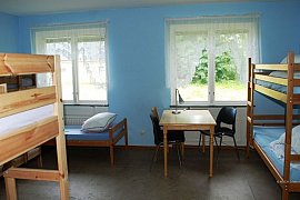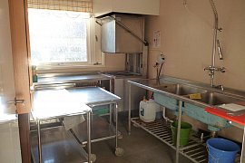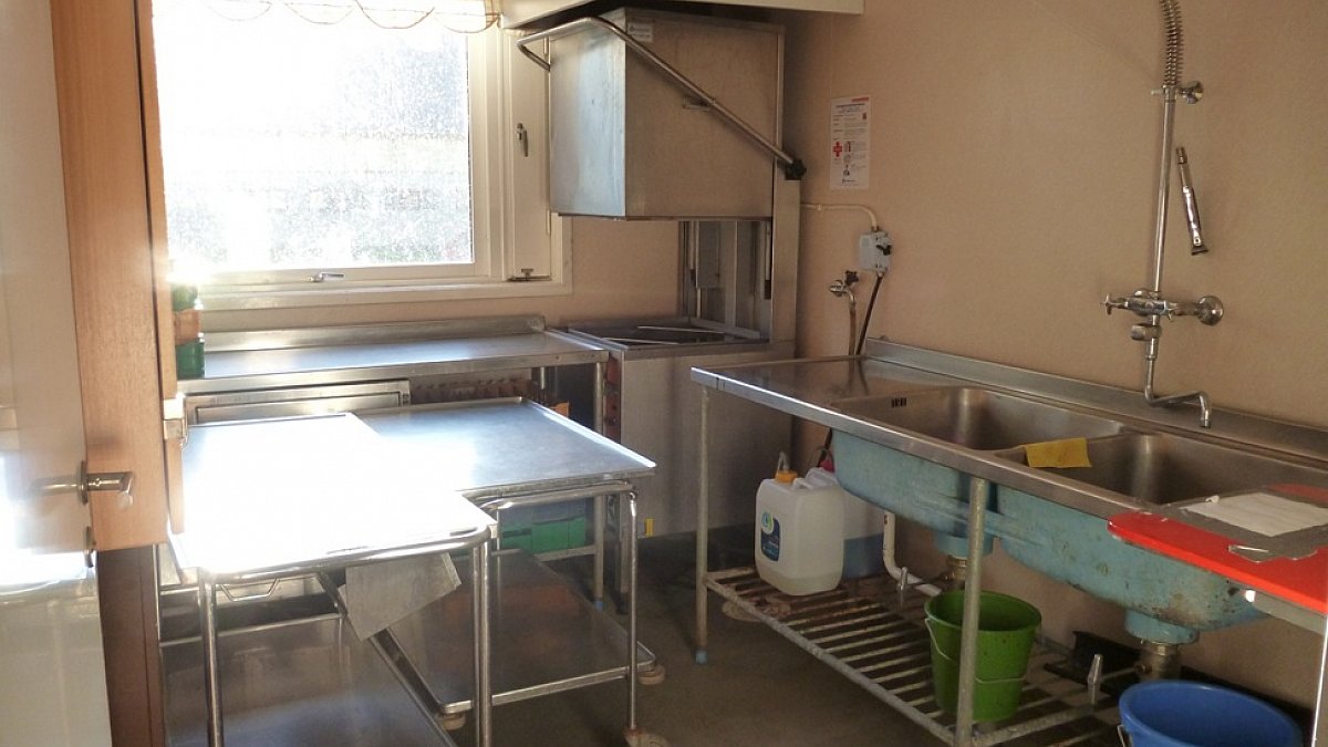 - Erdgeschoss: ein Zimmer mit 2 Betten und WC, Küche, Spülküche, Versammlungs- und Essensraum, zwei kleine Gruppenräume sowie ein Büro / Materiallager
