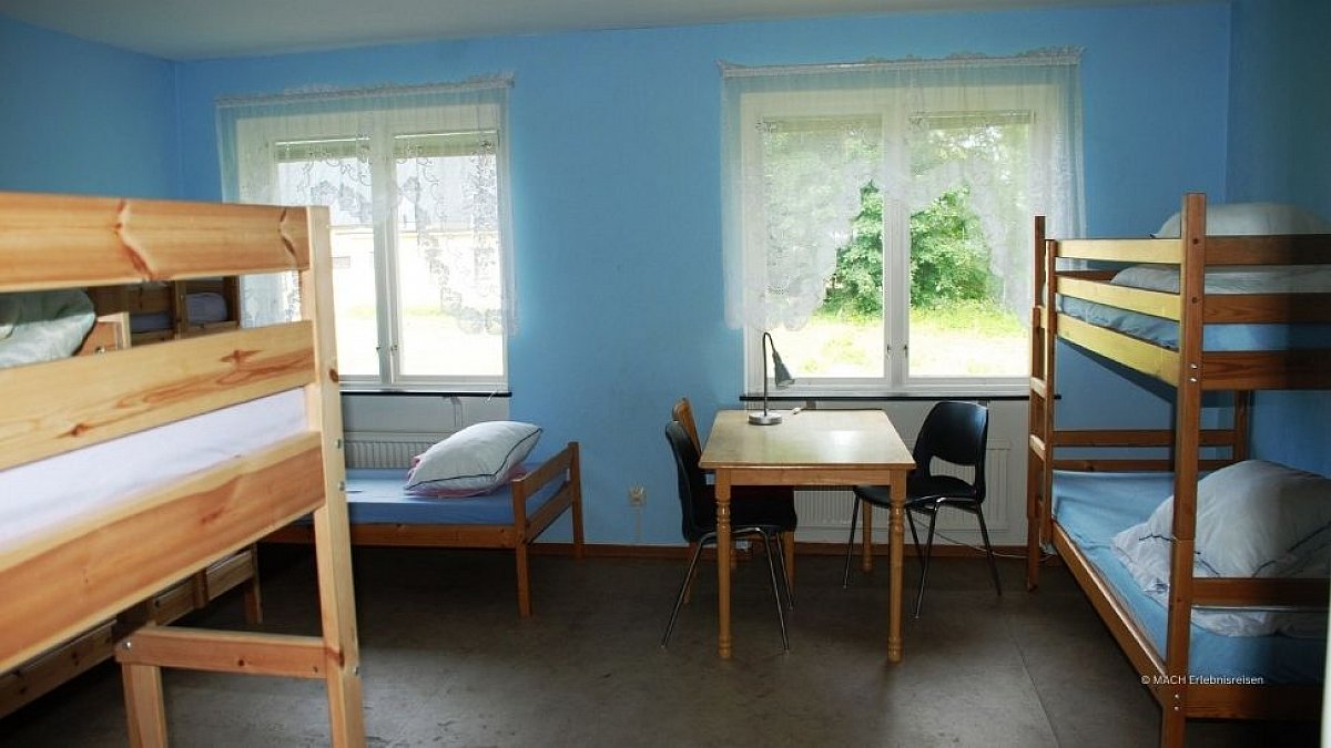 - Erdgeschoss: 29 Betten in einem 1-Bett-, vier 2-Bett-, zwei 3-Bett-, zwei 4-Bett- und einem 6-Bettzimmer